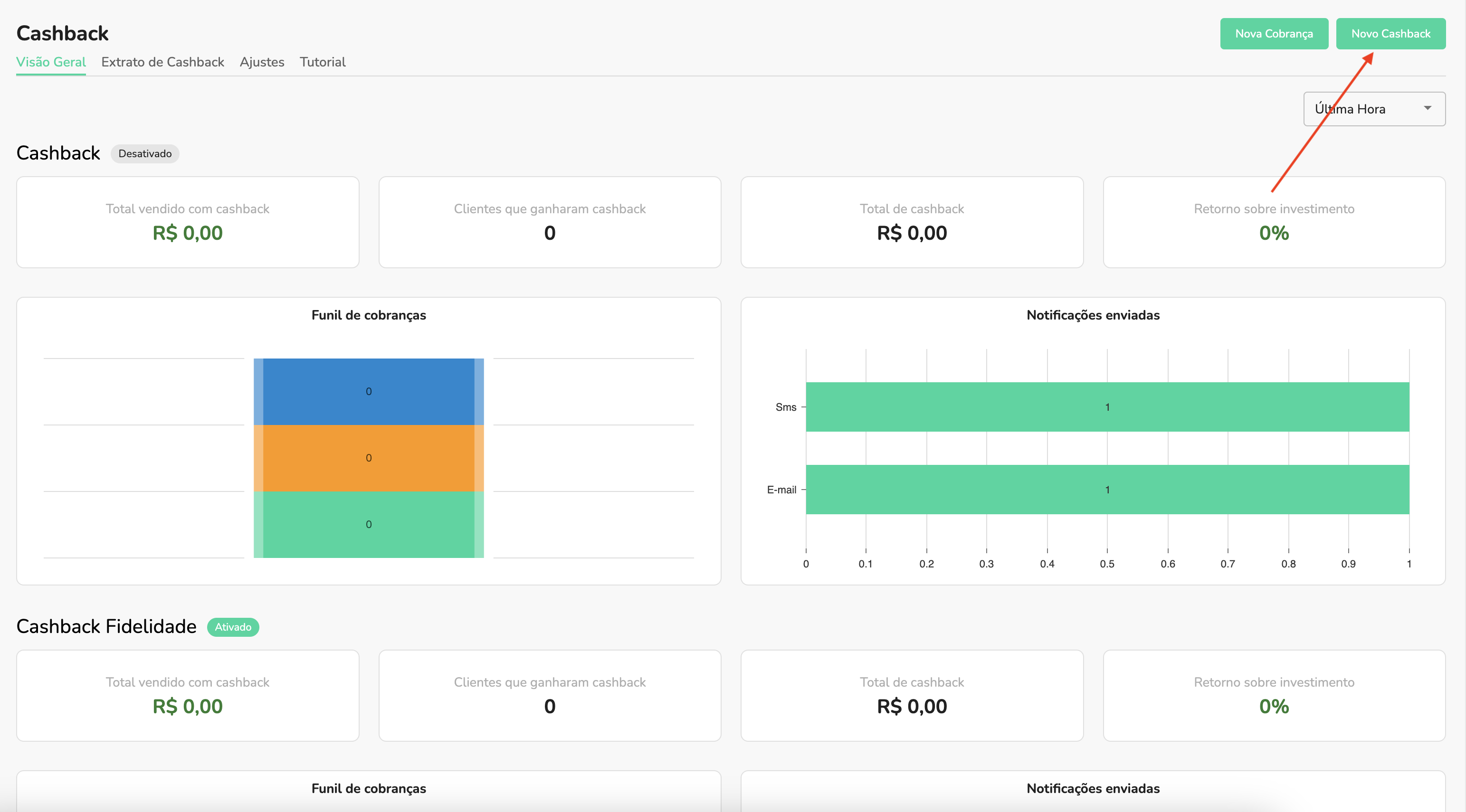 2. Clique em Novo Cashback