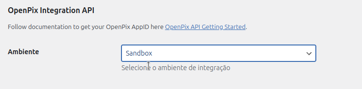 Localize input de seleção "Ambiente" e troque para qual ambiente deseja integrar o plugin