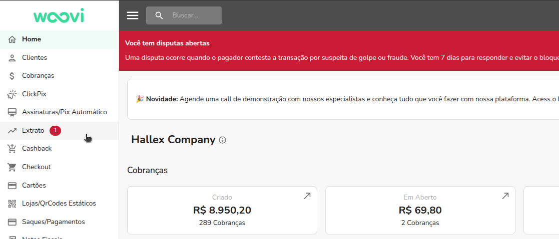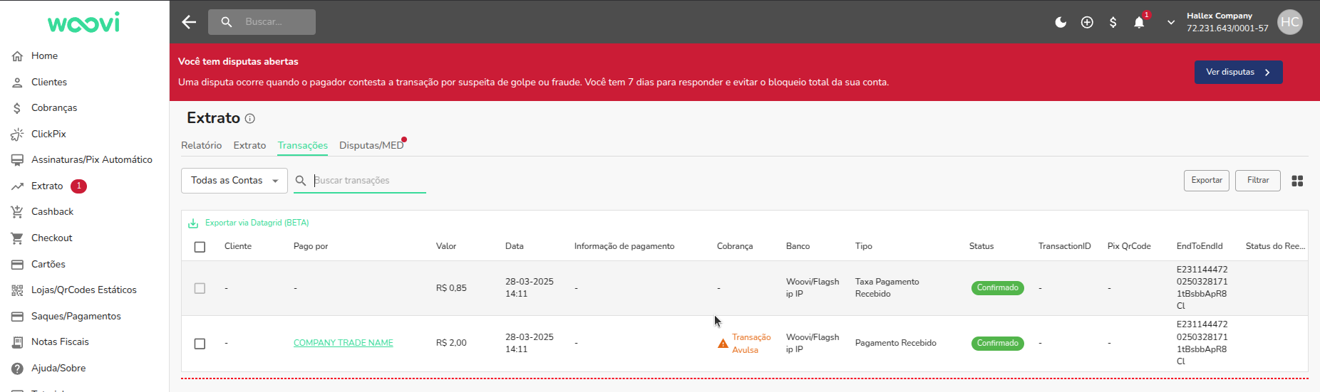 Para obter um endToEndId do tipo pix-in, vá ao dashboard, em "Extrato" localize a aba transações e clique nela