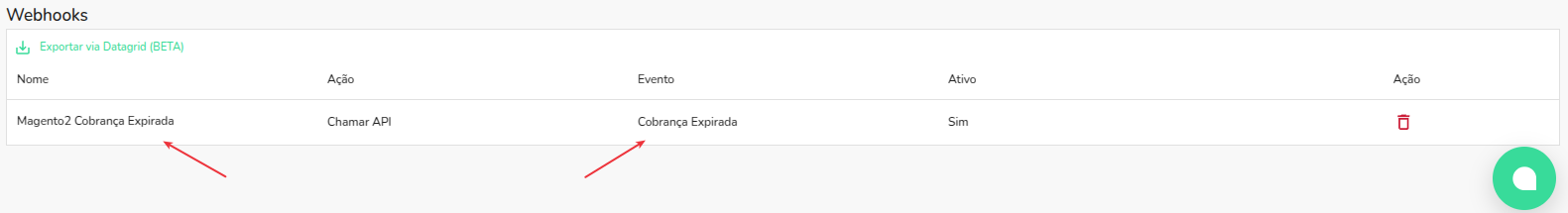 - Evento: com tipo do evento do webhook novo que será "Cobrança Expirada"