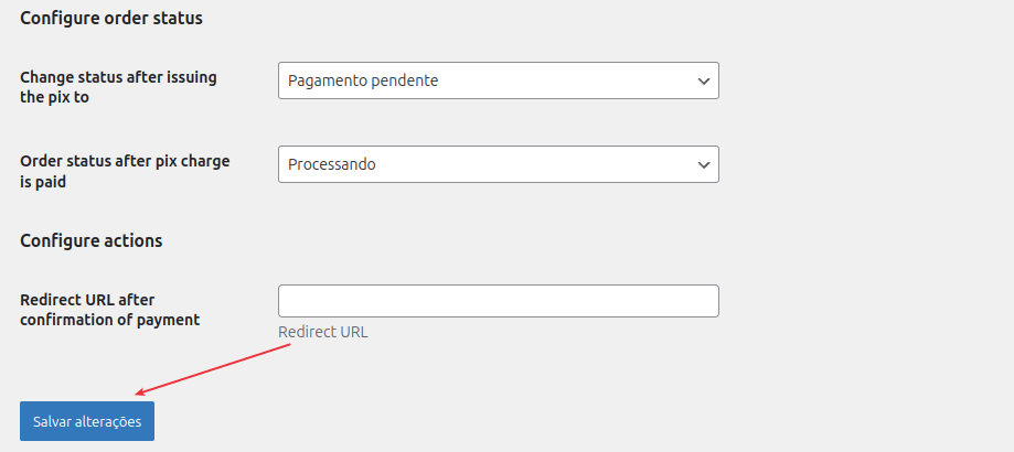 Feito isso, volte para tela de configuração do plugin no seu painel admin do wordpress, role até o final e clique em salvar alterações