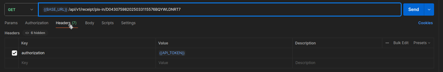 :receiptTypepelo tipo de recibo que você está querendo buscar (pix-in, pix-out ou pix-refund). - Substitua onde está